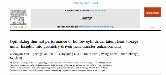 近日,beat365能源与机电工程学院能源与动力工程严中俊博士以第一作者在工程技术Top期刊《Energy》(中科院一区,IF:9.0)发表题为“Optimizing thermal performance of hollow cylindrical latent heat storage units:Insights into geometry-driven heat transfer enhancements”的研究文章,荷兰代尔夫特理工大学刘政轩博士为通讯作者,华中科技大学罗勇强副教授为共同作者。