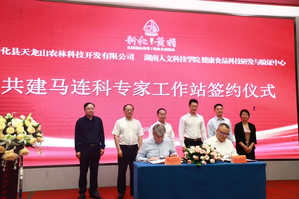 4月22日,学校与新化县天龙山农林科技开发有限公司在新化县举行专家工作站签约仪式。校党委副书记朱强出席。