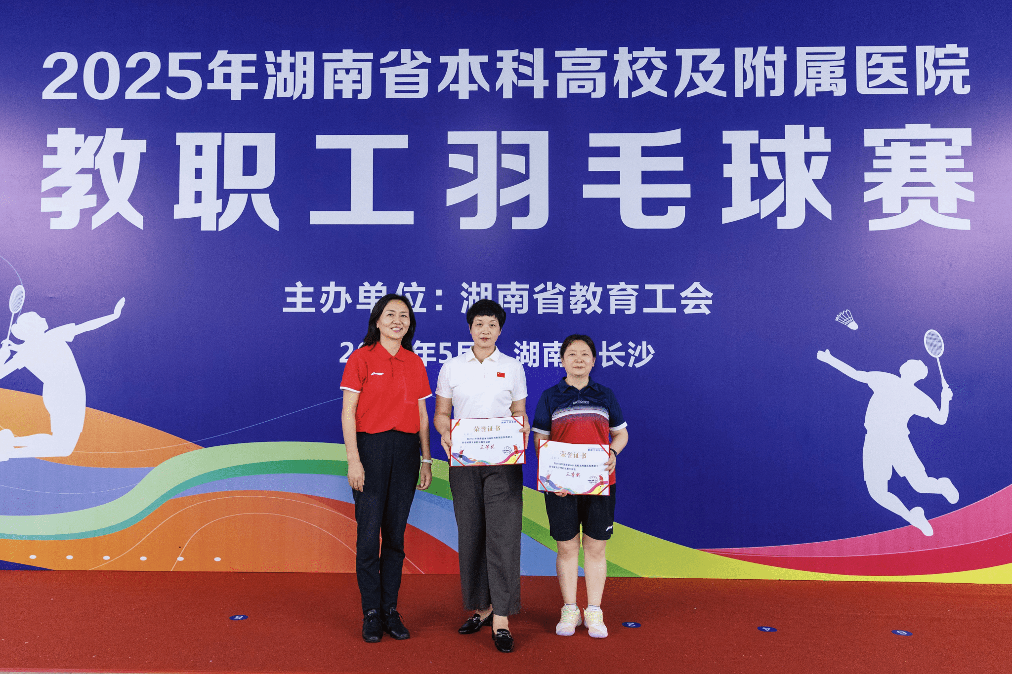 5月15日,为期三天的“2025年湖南省本科高校及附属医院教职工羽毛球赛在湖南省体育场羽星球馆圆满落幕。本次比赛由湖南省教育工会主办,全省本科高校及附属医院共有40余支代表队参赛。赛场上,选手们活力四射,挥汗如雨,斗志昂扬,展现了良好的体育拼搏精神。