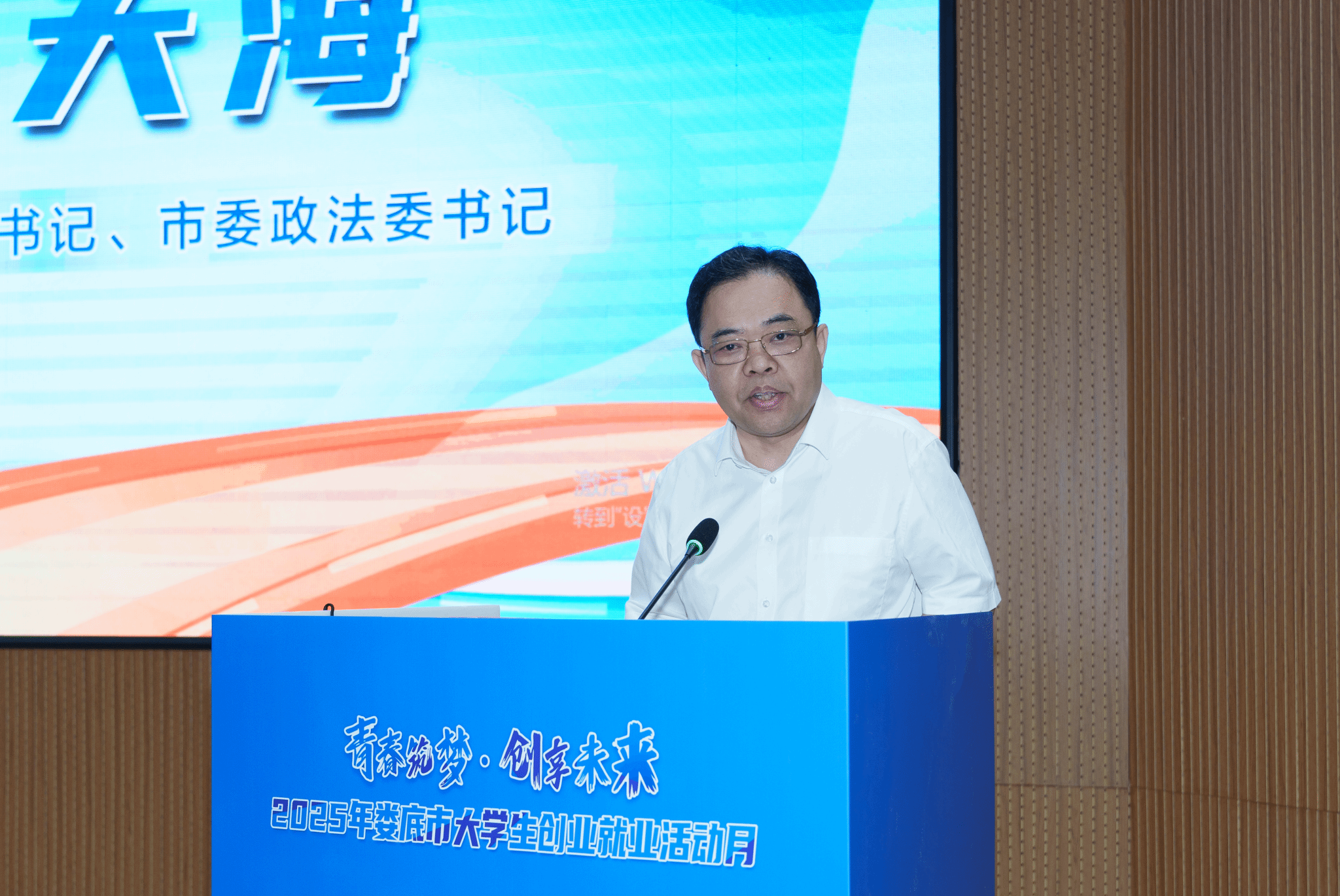 5月20日,2025年娄底市“青春筑梦 创享未来”大学生创业就业活动月启动仪式在学校匠成楼举行。活动由中共娄底市委、娄底市人民政府主办,市教育局、市人力资源和社会保障局、市税务局、团市委、市妇联等单位联合承办,beat365中文官方网站协办。湖南省教育厅一级巡视员柴世钦,省人社厅党组成员、副厅长焦华芳,娄底市委书记曾超群,市委副书记、市委政法委书记蒋天海,beat365中文官方网站党委副书记、校长盛明科出席。