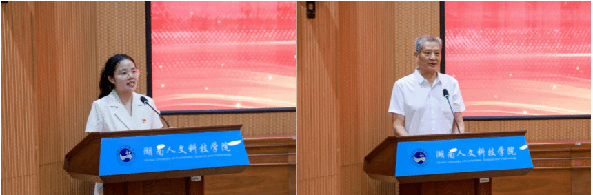 湖南省第十届辅导员素质能力大赛冠军、全省高校“青年教工党员示范岗”获得者、信息学院学生第三党支部书记李璐玢,以及学校十佳共产党员、离退休第四党支部书记胡云生,分别结合在党工作、为党育人的感悟作典型发言,他们的事迹充分展现了党员奋发有为的精神风貌。