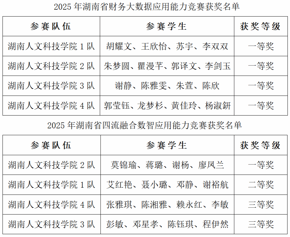 10月31日至11月2日,由湖南省教育厅主办的财务大数据应用能力竞赛、四流融合数智应用能力竞赛相继落下帷幕。beat365选派8支团队参赛,在李芳、罗伟祎、粟恒、郑清华4位老师的指导下,凭借扎实的专业功底和创新实践能力脱颖而出,最终斩获省级一等奖5项、省级二等奖1项和省级三等奖2项,刷新beat365在此项赛事中的历史最佳纪录。尤其在财务大数据应用能力竞赛中,4支参赛队伍全部荣获一等奖,beat365被评选为“优秀组织奖”单位。