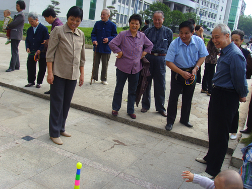 为提高离退休教职工参加户外活动的积极性,并为他们创造相互见面和交流的机会,9月12日,院离退办在学院海园广场的健身场举办了“迎国庆趣味运动会”。运动会共设“投篮”、“套圈”、“投镖”、“蹬力”、“仰卧起坐”等五个比赛项目,这些项目适合老年人的特点,运动量小、趣味性强,所以很受离退休教职工的欢迎,在比赛场上大家相互问好,久别重逢的喜悦中度过了愉快的一天。