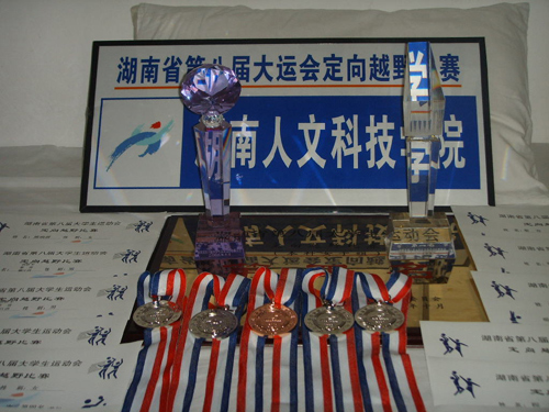 我院定向运动队自1999年成立以来,在学校领导和有关部门的关注与支持下,通过教练员、队员们的共同努力,取得了长足的发展和进步,在1999年11月湖南省首届大学生定向越野锦标赛中一炮打响,获女子团体第一,轰动全省。此后,定向运动队再接再厉、越战越勇,多次在省级、国家级比赛中取得优异成绩,并造就了国家队教练,为国家定向队输送了队员,我院定向运动在全国享有盛誉。尤其是在2005年11月的湖南省学生定向锦标赛中,我院取得了包揽学院组全部9座团体金杯的辉煌战绩。