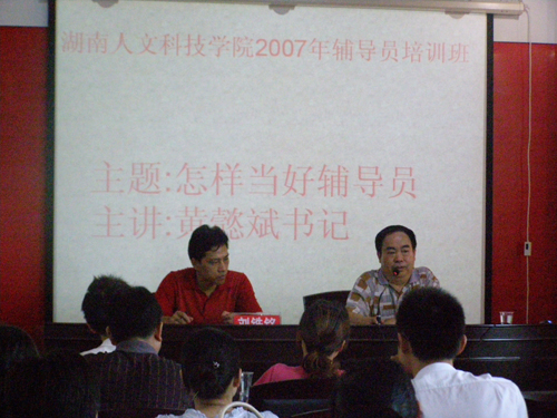 此次培训内容包括辅导员的素质结构和职业道德,学习和解读有关政策文件。主要以专题讲座、经验介绍和工作研讨等形式进行。院党委书记黄懿斌教授做了题为《怎样当好辅导员》的讲座,院长助理刘铁铭教授做了题为《辅导员培训班的意义及辅导员的素质要求》的讲座,特邀的中南大学基础教育学院党委书记、博士生导师刘新庚教授做了题为《大学生学风建设》的讲座,学工部的各部门负责人也就各自职能范围和工作经验讲授了相关的专题。专题讲座后,三位经验丰富的辅导员做了典型经验介绍,全体辅导员紧紧围绕着“如何实现辅导员工作的科学化和规范化、提高辅导员的职业行为能力”等中心内容展开了热烈而富有成效的讨论。