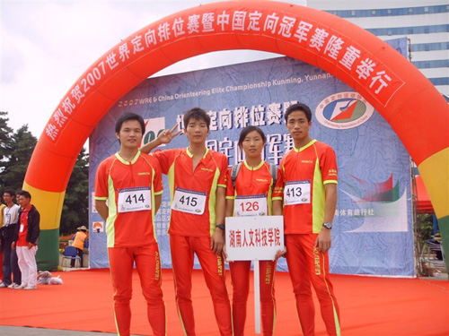 由国际定向联合会、中国国家体育总局主办的2007年世界定向排位赛暨中国定向冠军赛于10月1日至5日在昆明举行。这是我国继2005年之后举办的又一重大国际赛事。有来自21个国家和地区的510名运动员参加。我院黎青、戴江洪、罗辉、刘幸芝(女,经管系)四人有幸获得参赛资格。他们不畏强手,与世界定向顶级精英同场竞技,并取得可喜成绩。戴江洪获男子短距离第二名,黎青获男子中距离第三名。