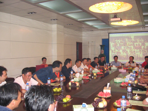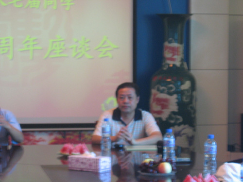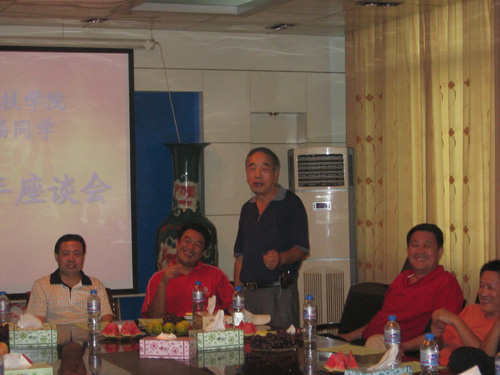 下午4:00分,校友们来到了学校办公楼四楼会议参加座谈会,党委委员、党办院办主任李高海同志,院长助理刘铁铭同志,校友会老师,体育科学系的老领导及现任领导和老师参加了会议。李高海同志向同学们介绍了学院的情况与未来的规划,刘铁铭同志代表学校领导向同学们的到来表示热烈欢迎,体育科学系原主任颜寿高同志作了精彩风趣的发言。之后体育科学系现任领导和老师作了发言,同学们也将目前的一些情况与取得的成绩进行了介绍,并向老师们赠送了校友特制的纪念品。