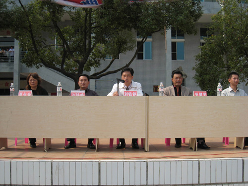10月23日中午,我院第四届迎新篮球赛开幕式于理科楼前坪隆重举行。院体委主任、院长助理刘铁铭教授,院体委常务副主任、体育系主任彭健明教授,学工处副处长刘铁峰、夏永全、周迎杰同志及学工处全体老师出席了开幕式。开幕式由刘铁峰副处长主持。
