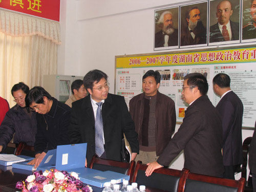12月17日上午,省“十一五”重点建设学科检查组专家省教育厅厅长助理、湖南商学院夏飞教授,湖南师范大学马克思主义教育学院副院长方小年教授,中南林学院佘济云教授,省教育厅科技处潘军一行4人来我院检查指导重点学科建设情况,并在办公楼会议室与我院院长姜正国教授,副院长刘和云教授以及各重点建设学科负责人举行了交流汇报会。