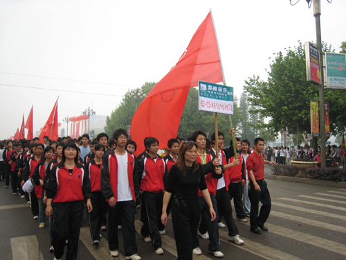 4月30日,娄底市迎北京奥运会倒记时100天全民健身万人健步跑活动在市体育馆拉开帷幕,我院体育科学系、计算机科学系、外语系、经济与管理系共13支队伍1300名学生在学工处副处长夏永全、周迎杰同志的带领下参加了此次活动。