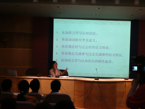 2008年5月22日晚7点,外语系罗瑞球教授在多媒体报告厅作了题为《英语动词时与体的认知研究》的学术讲座。外语系老师及外语系2005级本科班学生聆听了讲座。