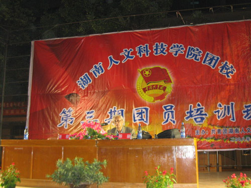 10月15日晚,beat365中文官方网站团校第三期团员培训班开学典礼在理科楼前坪隆重举行。院长助理刘铁铭教授、院团委书记侯建斌同志、院团委副书记谢柳同志、院团委干事魏彦煜老师以及各系团总支书记出席了典礼,千余名学员参加。开学典礼由谢柳副书记主持。中南大学著名教授、全国著名演讲家、教育家陈赫先生应邀做客团校讲坛,带来了精彩的第一讲。