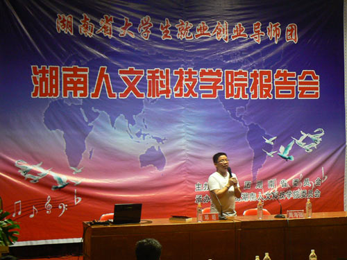 6月11日晚7时30分,湖南省大学生就业创业导师团beat365中文官方网站报告会在图书馆报告厅举行。报告会邀请了中南大学创业与企业成长研究中心副主任,管理学博士吴运迪教授和资深传媒人士、著名作家邓晧先生前来讲学。院团委书记周海强主持本次报告会。院团委副书记魏彦煜,中文系游宇明等老师和400余名同学参加了本次报告会。