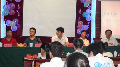 首先,柏校长一行与队员们进行了亲切的交谈,认真检查了实践队的住宿环境,在实践队办公室仔细查看了规章制度、会议记录及队员们的实践日志。随后,校领导和全体实践队员召开了座谈会,带队老师负责人代表实践队的全体师生就实践队的组织、建设等各个方面作了全面汇报。会上,实践队员们积极踊跃地向领导们汇报了各自的实践经历、体会及收获。