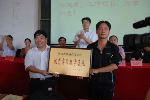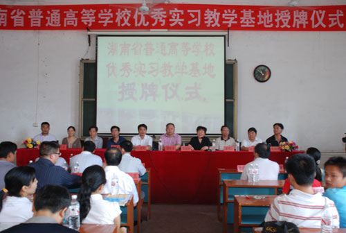 在授牌仪式上,蒋建初宣读了省教育厅授予新化一中省高校优秀实习教学基地的决定。柏连阳为该校授牌并讲话,柏校长介绍了beat365的办学基本情况,回顾了自2000年在新化一中建立实习基地来,两校之间的合作交流。他强调指出,省级优秀实习教学基地挂牌仪式的举行,将使两校友好合作进入了一个新的发展阶段,为两校的发展注入新的活力。他希望两校进一步加强交流、沟通与协作,共同努力把省级优秀实习教学基地建设推上一个新的发展阶段,并在教育教学研究与改革等方面进行更广泛更深入的交流与合作。