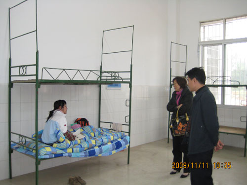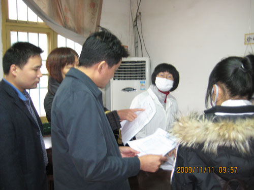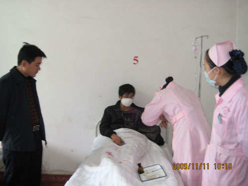 柏校长一行首先来到校卫生所,在仔细询问学生来所诊断治疗情况,各系报告甲型H1N1流感患病情况,卫生所医务人员工作生活情况后,柏校长对医务人员辛勤工作表示慰问和感谢,叮嘱他们在为学生看好病的同时,一定要做好自身防范工作,同时要加大防范甲型H1N1流感的宣传教育。随后,柏校长一行来到娄底卫校附属医院,看望慰问因确诊患上甲型H1N1流感在此隔离治疗的钱莉等2位同学,在仔细询问了他们病情后,鼓励他们勇敢与“甲流”作斗争,祝福他们早日康复!叮嘱医务医护人员对他们一定要精心照料。从娄底卫校附属医院出来后,柏校长一行先后又来到学生公寓B栋242﹟、学生宿舍9栋、体育馆等地,检查了解甲型H1N1流感防范工作,现场解决有关困难问题,并看望慰问因感冒被隔离观察治疗的8位同学。