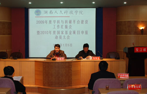 1月5日,beat3652009年度学科与科研平台建设工作汇报会暨2010年度国家基金项目申报动员会在多媒体报告厅召开。校学术委员会成员,各重点建设学科、省社科研究基地、省高校产学研合作示范基地、农科所及各研究所负责人及成员,各系部主任及分管科研的系部领导,部分教授、博士参加了会议。