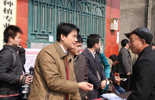 校长(左二)在解答农户咨询有关植保问题