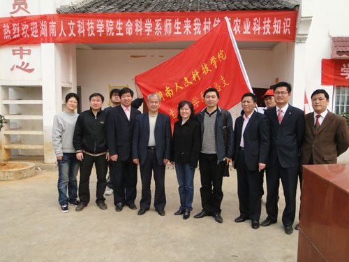3月21日上午,生命科学系40余名青年志愿者在系相关负责人的带领下来到了娄底市新农村建设模范村——万宝镇群益村,开展“学习雷锋、科技惠农”活动。在活动仪式上,群益村党支部书记曾春桂对志愿者们的到来表示热烈欢迎,学校副院级督导员李凤莲发表了讲话,指出此次活动意义深远,希望此行能够真正的惠及广大的农民群众。随后,生命科学系李向阳老师为村民们讲解了农科小知识和除草剂的使用方法,并为到会的60多位村民免费发放了校振农公司研制的除草剂。在群益村的法律咨询室,政法系罗光宇老师热情地为村民们解答了一个个法律方面的问题。在讲座开展的同时,调研工作也开展得如火如荼,团队成员分组深入农户家庭进行有关农村生活以及新农村建设的问卷调查,在调查过程中,团队成员积极与村民进行沟通,了解并收集到了许多重要信息。