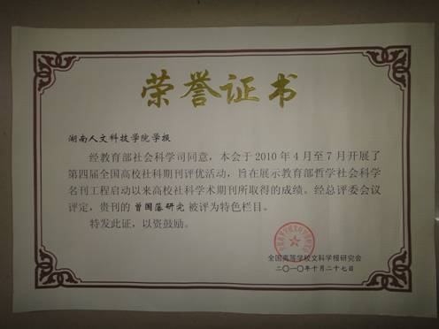 10月27日,全国高等学校文科学报研究会第四届评优活动总结评比大会在西南大学召开,会上公布了全国高等学校文科学报研究会第四届评优结果。beat365学报蝉联全国高校百强社科期刊,学报“曾国藩研究”专栏被评为全国高校社科期刊特色栏目。
