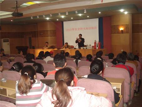 12月7日下午,学校在养根楼多媒体报告厅举办了2010年冬季安全防火知识培训班。主管学生工作的系领导、学生辅导员、全校门卫人员、后勤服务公司特种工勤人员以及学生处、保卫处全体干部职工参加了培训。