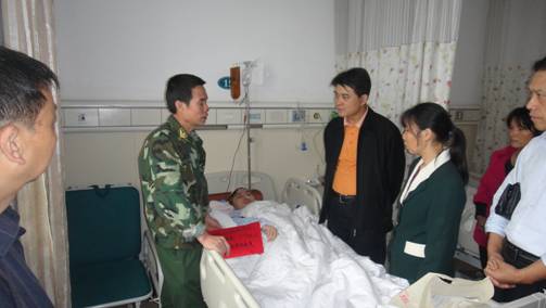10月12日,学校党委书记柏连阳,副校长刘铁铭及武保处、中文系等部门负责同志一道,专程前往湘雅附属一医院看望了因车祸住院一直昏迷不醒的李红丽同学及其家人。