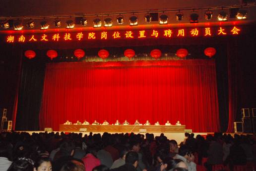11月2日晚,学校岗位设置与聘用动员大会在体育馆召开,全体校领导出席会议,全校教职工1100多人参加会议。会议由校长郭军主持。