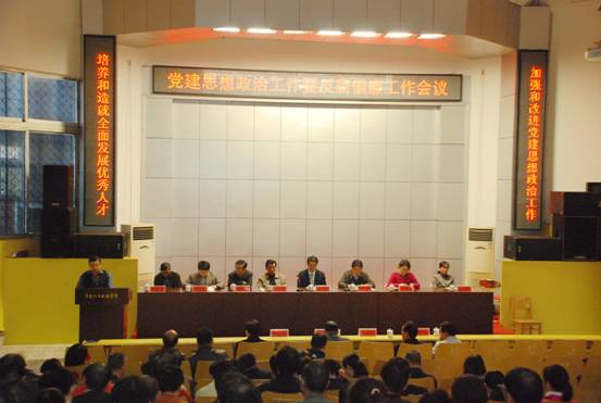 校党委书记柏连阳作了《凝心聚力,改革创新,开创beat365党建和思想政治工作新局面》的工作报告。他指出,全校党员干部要深化认识,切实增强党建与思想政治工作的责任感和使命感,加强党建与思想政治工作是落实十七届六中全会精神、践行“三个代表”、推进我省“四化两型”建设、维护高校和谐稳定、实现beat365科学发展的迫切需要。总结beat365党建与思想政治工作取得的成绩时,柏书记指出,过去一年,创先争优活动扎实推进,党的思想建设、组织建设不断创新加强,党管干部和人才工作进一步加强,大学生思想政治工作得到改进,反腐倡廉工作明显成效,党建带动其他工作全面发展。柏书记号召大家凝心聚力,用改革创新精神推进党建与思想政治工作:深入开展为民服务创先争优活动,加强领导班子建设,加强干部和人才队伍建设,深化基层党组织建设,抓好安全稳定工作,加强大学生思想政治工作,推进党风廉政建设和反腐败工作。
