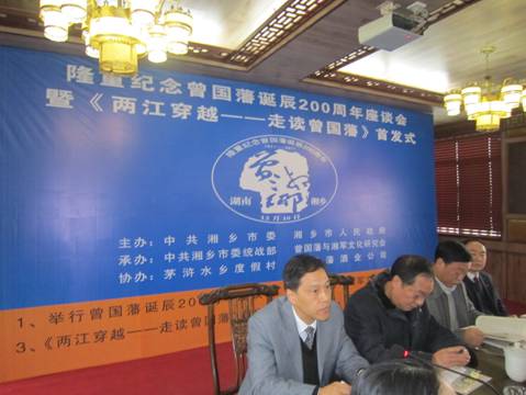 12月10日,副校长、湖南省曾国藩研究基地首席专家、曾国藩与湘军文化研究会副会长刘铁铭教授等应湘乡市委、湘乡市人民政府之邀赴湘乡参加了纪念曾国藩诞辰200周年座谈会。