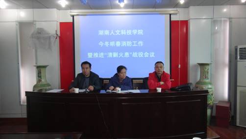会议对全校今冬明春消防工作暨推进“清剿火患”战役进行了安排部署。一是对“清剿火患”战役相关工作进行了安排。要求各单位(部门)认真开展“六个一”宣传教育专项活动,认真开展消防隐患排查,彻底消除安全隐患。二是就如何做好消防安全“四个能力”建设做了详细的安排。要求各单位组织职工、学生认真学习,切实提高防火灭火能力。三是就如何进一步落实消防安全责任制提出了具体要求。