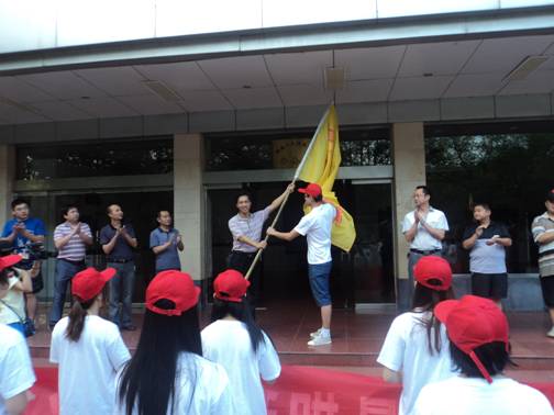 7月11日早上6:00,beat3652012年暑期社会实践活动出征仪式在一办公楼前坪举行。校党委委员、副校长刘铁铭,党委宣传部、学生工作处、思政部党、团委等部门负责人以及各个实践活动队的指导老师和93名志愿者一起参加了仪式。