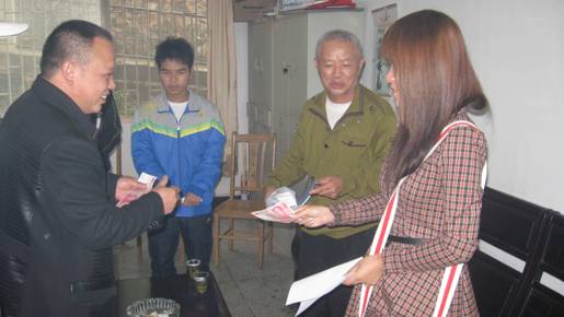 在离退办办公室,成先生等爱心人士对2012级蒲声春等7名同学的家庭情况进行详细了解后,表示将对这7名优秀贫困大学生进行每人每月300元生活费的支助,并当场发给他们第一个月的生活费,鼓励他们克服各种困难,努力学习立志成才。