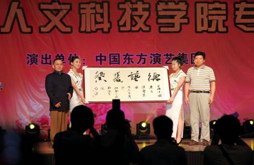 校长刘和云向东方演艺集团赠送《德艺双馨》牌匾