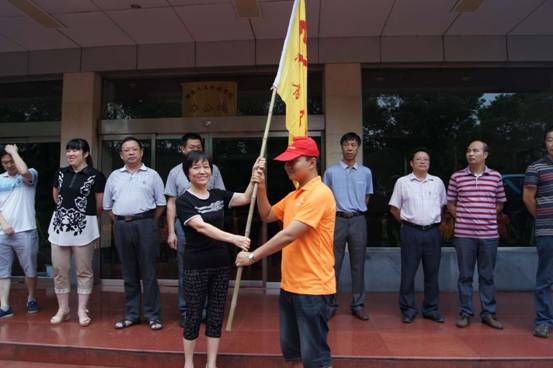 纪委书记李凤莲为志愿者队员授旗