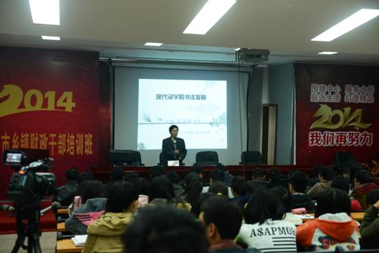 11月24日上午,湖南师范大学教授彭泽润先生在逸夫楼多媒体报告厅做了《现代汉字与书法发展》的专题讲座。讲座由美术系副主任陆序彦主持,书法教研室主任易俊组织。美术系党政领导、书法学教研室教师和300多名书法学专业学生参加了讲座。