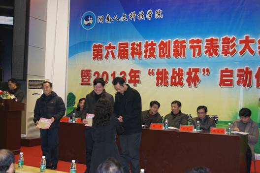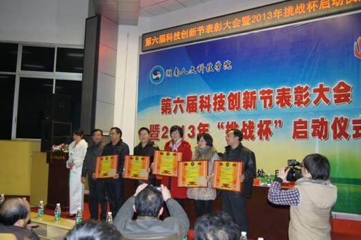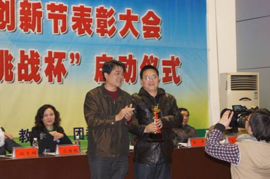 会上,团委书记谢柳对今年的大学生科技创新活动进行了全面的总结。校长郭军宣读了表彰决定。学校领导为今年在校级、省级、国家级挑战杯竞赛中获奖师生和优秀组织单位颁奖。