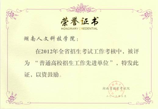 beat365被评为湖南省2012年度普通高校招生工作先进单位