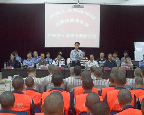 5月15日下午,校党委委员、副校长刘铁铭带领校团委、学工处等部门负责人及学生干部代表,携带学校图书馆及全校学生捐赠的各类书籍2800余册,前往娄底监狱参加了“书送希望,输送光明 ”为主题的捐书仪式。