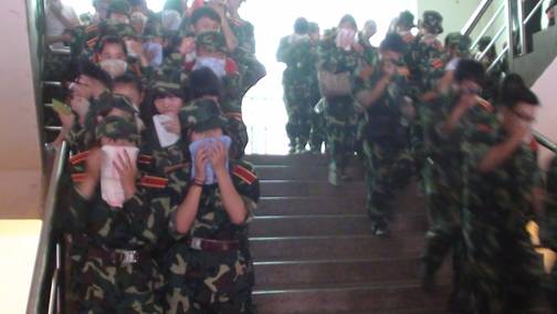 2013级新生消防应急疏散演练现场