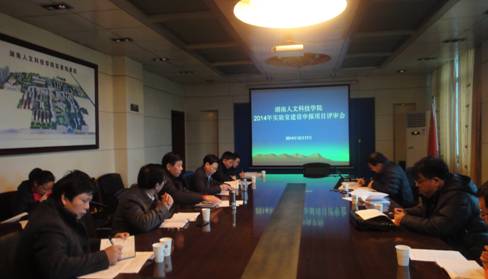 12月17日下午,学校在明德楼第一会议室召开2014年实验室建设项目评审会议。学校党委书记郭军,校长刘和云,副校长蒋建初、陈志国,教务处、国资处、计财处、科技处等部门负责人,校实验室建设指导委员会成员等参加了会议,会议由副校长蒋建初主持。