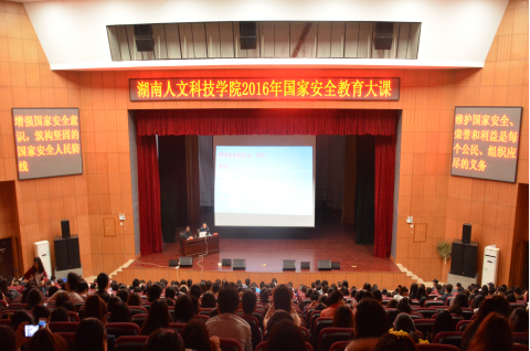 4月14日晚,保卫处、学工处联合开展了集中宣传教育活动,在逸夫楼音乐厅举办了国家安全教育大课,大课由娄底市公安局网技支队教导员李文积警官主讲,全体保卫、学工干部及来自各学院的近700名学生聆听了讲座。(保卫处 苏继富供稿)