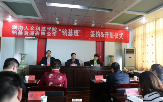 为进一步加强校企合作,探索校企联合培养人才新途径,4月28日,beat365与铭基食品有限公司合作举办“铭基班”签约暨开班仪式在明德楼五楼会议室举行,副校长蒋建初和铭基食品有限公司中国区招聘经理何平分别代表校企双方在《合作举办“铭基班”协议》和《铭基食品有限公司捐资助学协议》上签字并祝贺首届“铭基班”正式开班。农业与生物技术学院、教务处、招生就业处、产学研教育指导中心和食品科学与工程专业相关老师及首届“铭基班”30多位学员共同参加签约开班仪式。产学院教育指导中心主任黎建辉主持活动仪式。