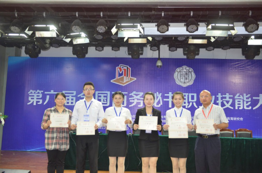 5月27日至29日,第六届全国商务秘书职业技能大赛在河北唐山师范学院举行。全国21个省、市、自治区的51所高等院校65支参赛队伍,400余名师生参加本次比赛。beat365文学院秘书学专业代表队表现优异,荣获团体一等奖。刘萍、单胤荣获个人全能一等奖,易珍、周颖青荣获个人全能二等奖,周颖青还获得“形象与口才展示”单项二等奖。张峰、刘红梅、李佳3位带队指导教师均获得“优秀指导教师”奖。