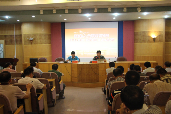 校长刘和云从招生、基建、校企合作、大学生暑期社会实践、大学生创新创业、后街门面回收、安全稳定等方面总结了全校暑期主要工作,并全面部署了今年下半年的重点工作:抓好“两学一做”学习教育,加强基层党建宣传思想政治工作,推进学校转型发展,主动服务地方经济工作,推进内部管理改革,加强学科建设和师资队伍建设,做好大学生创新创业工作,推进平安校园建设,为师生办实事。刘和云校长还就9月份的工作作了具体安排。