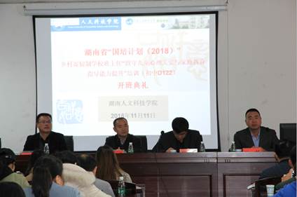 11月11日上午,“国培计划(2018)”--乡村寄宿制学校班主任“留守儿童心理关爱与家庭教育指导能力提升”培训(初中D122)项目beat365中文官方网站研修班开班。beat365中文官方网站副校长刘铁峰教授出席开班典礼。与会领导还有beat365中文官方网站继续教育学院院长刘辉,本项目负责人、教育学院院长刘超良教授,教育学院党总支书记周月朗教授,本项目首席专家、教育学院副院长李国强教授。典礼由刘辉主持。