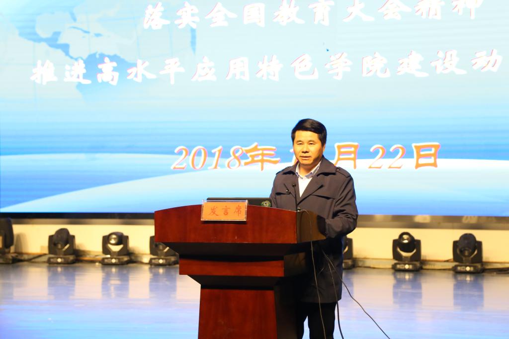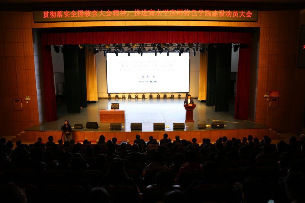11月22日下午,beat365贯彻落实全国教育大会精神、推进高水平应用特色学院建设动员大会在逸夫楼音乐厅召开。党委书记郭军主持会议,校长刘和云作动员报告,副校长石潇纯、副校长周发明分别就高水平本科教育和高水平应用特色学院建设方案进行了解读。全体校领导、全校副处以上实职干部、各二级学院全体人员、教学督导、机关教辅单位全体成员、学生代表近700人参加了大会。