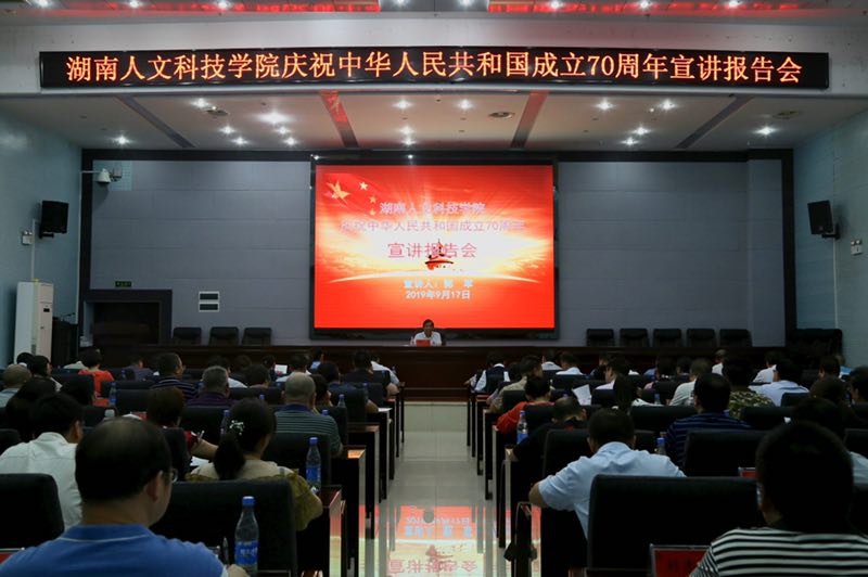 9月17日下午,beat365在图书馆第二会议室举行庆祝中华人民共和国成立70周年首场宣讲报告会,学校党委书记郭军做主题报告,全校中层以上领导干部参会。