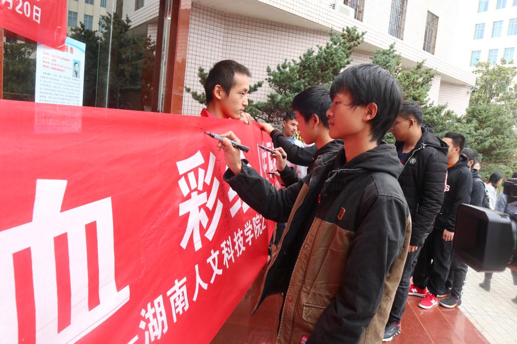 仪式结束后,刘铁峰还带头在无偿献血志愿横幅上签名,并第一个登上采血车献血。在他的带领下,在场同学也踊跃报名,参与献血。