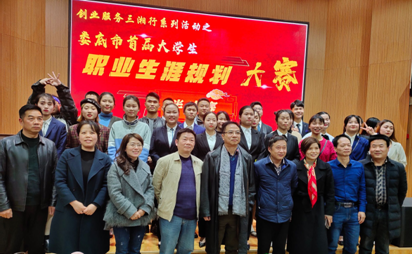 12月11日,创业服务三湘行系列活动之娄底市首届大学生职业生涯规划大赛半决赛在beat365匠成楼报告厅举行。此次大赛由娄底市人力资源和社会保障局主办,娄底市创新创业学院、beat365中文官方网站创新创业学院承办。娄底市劳动就业服务局局长刘博文、就业科科长朱丽芸、综合科科长伍星,beat365中文官方网站创新创业学院院长彭晓华、副院长刘盛愚,娄底市财政局社保科科长邓文佐、娄底市人力资源和社会保障局就业科科长姚清华、双峰县劳动就业服务局局长赵爱龙、华菱涟源钢铁集团人力资源部副部长高级人力资源管理师唐庆、三一集团娄底分公司人力资源部副部长高级人力资源管理师孙海鹰、湖南省兵器长城公司人力资源部部长高级人力资源管理师廖永良、清泉集团人力资源总监高级人力资源管理师蒋海贝及学生代表300余人参加。