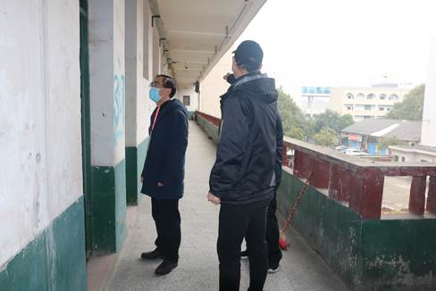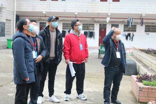 在西校区围墙建设工地,蒋建初一行对项目进行了详细考察,并明确建设方案;在学生宿舍第12栋改造成健康观察区建设现场,蒋建初一行从一楼检查到四楼,不漏一间,对健康观察区室内布置方案、洗手间设置做了明确要求。